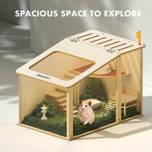 Wooden Hamster Cage Small Animal Acrylic Eco-Friendly Hamster Cage with House Bed