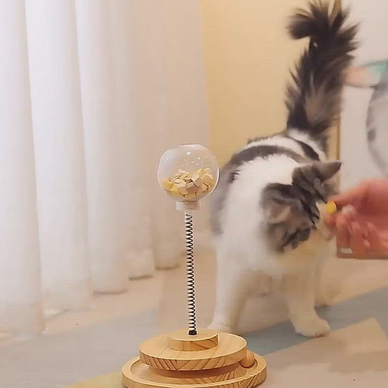 TRACK TOYS: The wood base consists of two ball tracks toy, giving cats more range of motion. Chasing rolling wooden balls can help cats exercise and keep them happy.